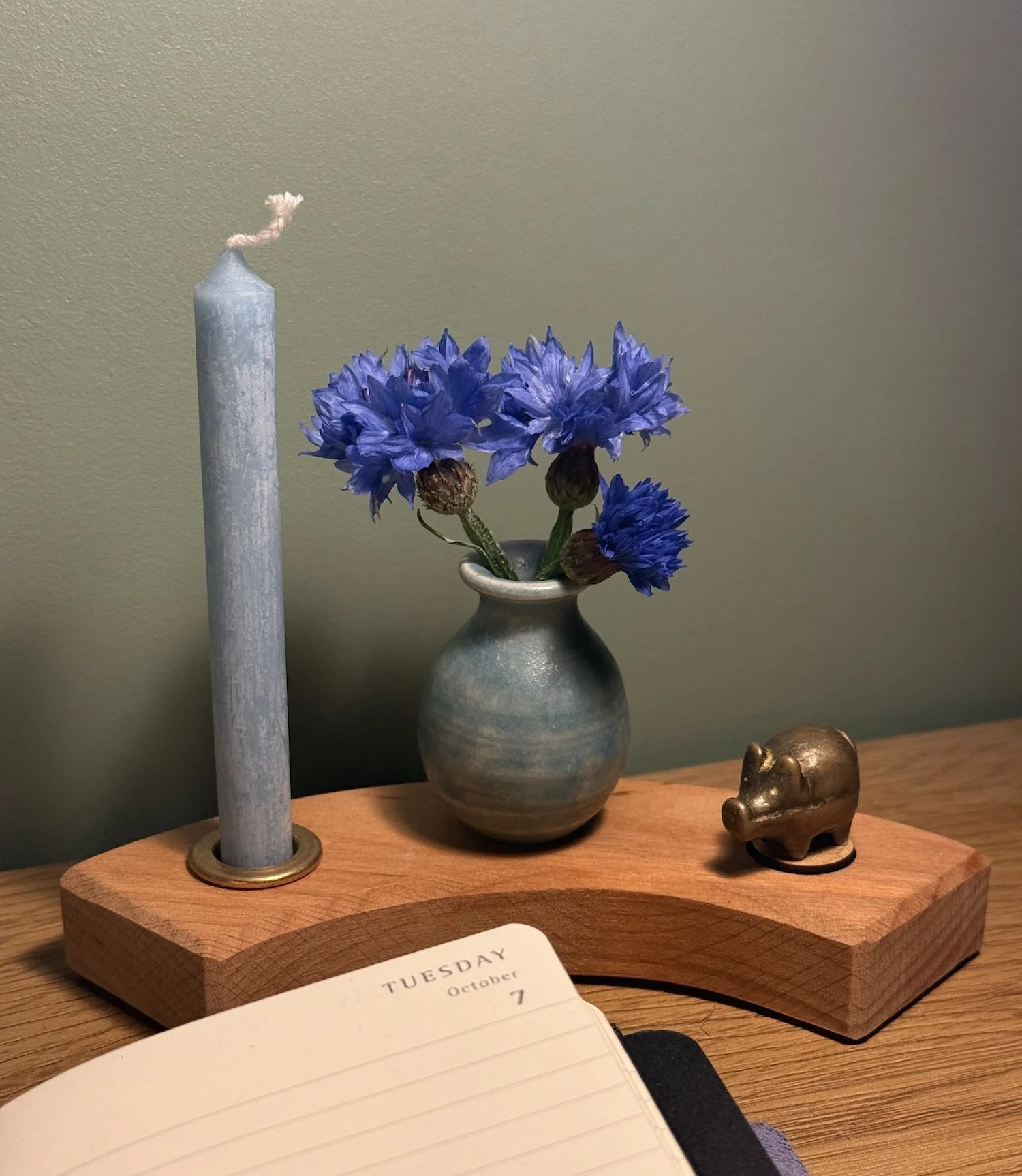 Det eg opplever som fint med bursdagsringen er korleis den ikkje ber om meir merksemd enn den du sjølv vel å gje den. Eg har ein del på nattbordet og sett opp gjenstander som betyr noko ekstra. Saknar eg kjærasten, sett eg opp eit bilete. Treng eg ei påminning om å vise takksemd, sett eg opp månen. Ynskjer eg påminning om å sjå magien i kvardagen, finn eg fram trollmannen. Og om eg rett og slett er litt gretten, sett eg opp Lille My.